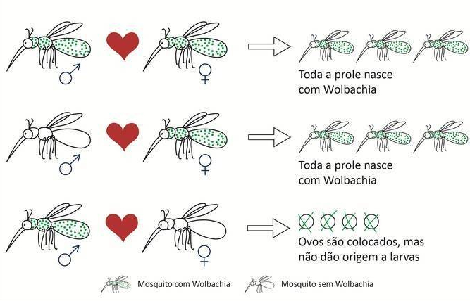 Além disso, não será necessário soltar novos mosquitos sempre, já que eles passam a se reproduzir com a bactéria. E mesmo que uma fêmea, que tenha a bactéria, reproduza com um macho que não a tenha, os filhotes nascem com ela, e se apenas o macho a tiver e a fêmea não, o filhote não nasce.